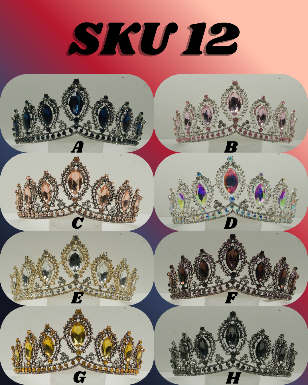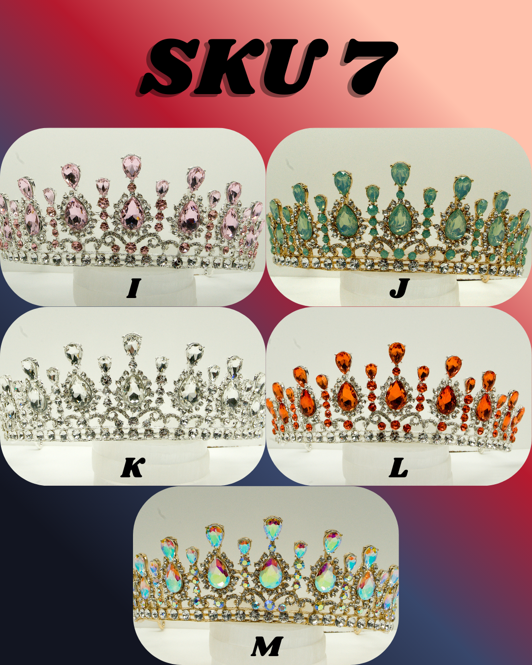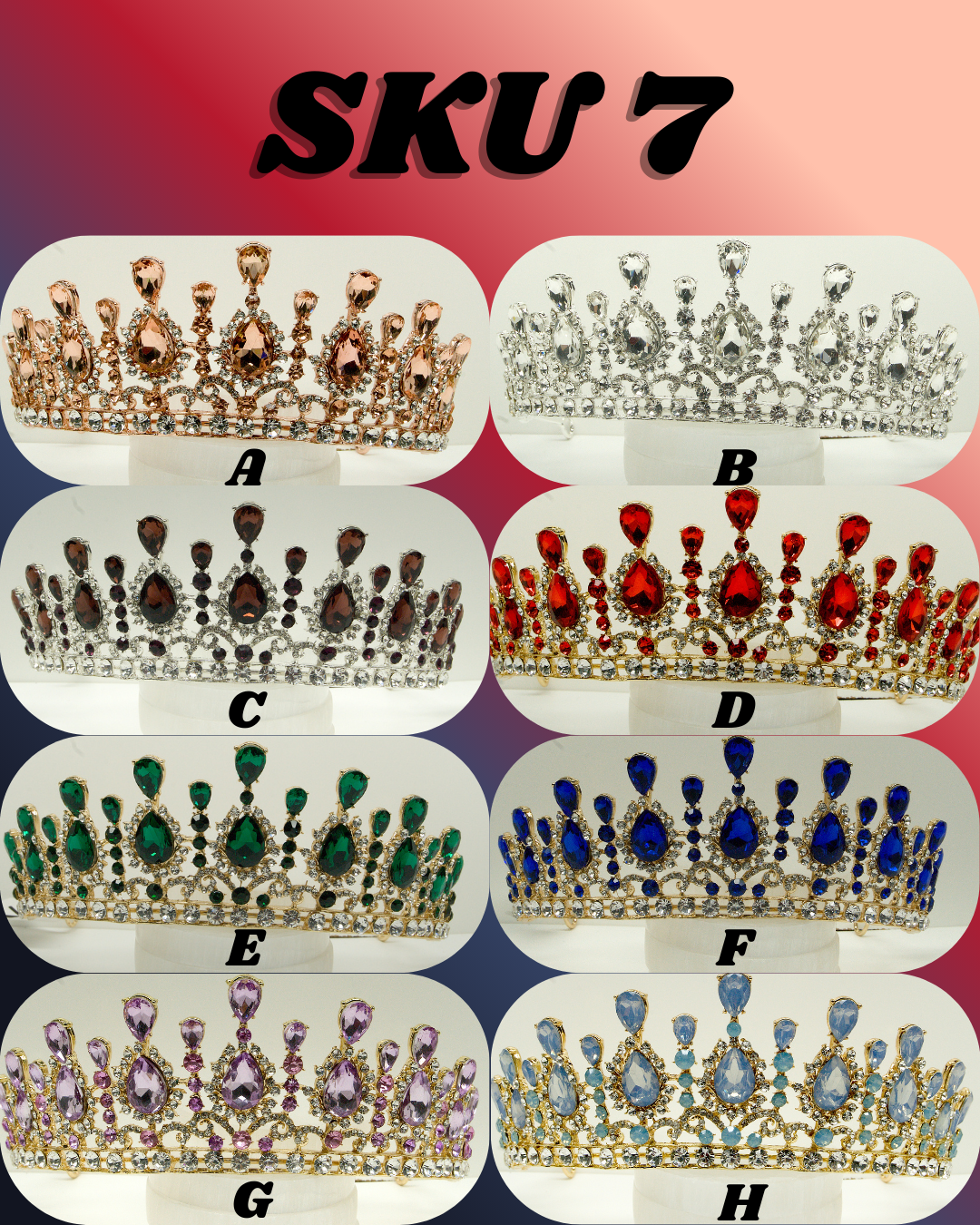 Crown diversity is what sells the most. The best way to order is tell me the quantity you would like and I will make the most diverse lot possible. Another way to order is tell me how many you would like and give me guidance on what colors you want more of and what you want less of. Another way to order is to pick exactly what you want. Order by SKU and then the letter by each Crown. BookViking@gmail.com