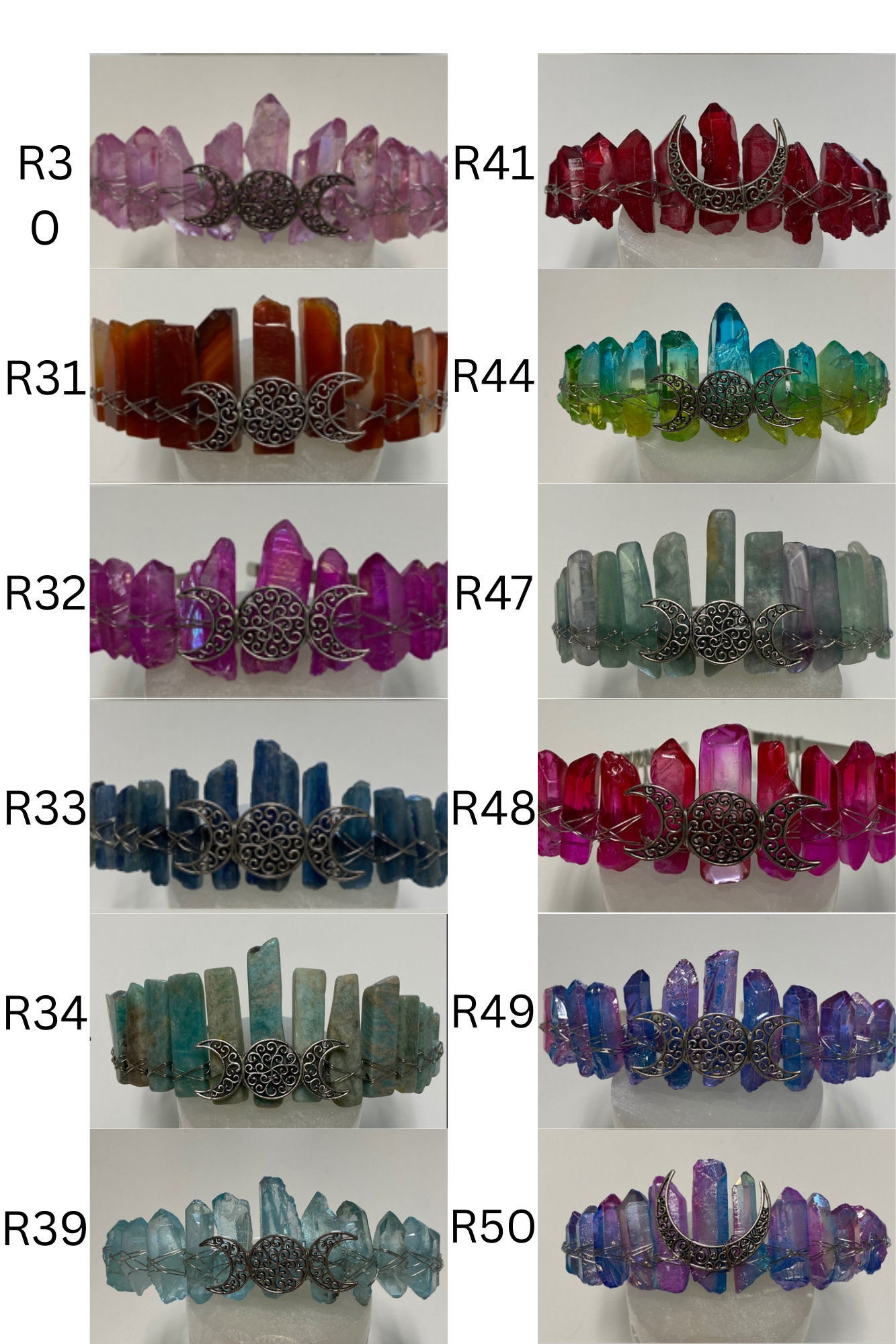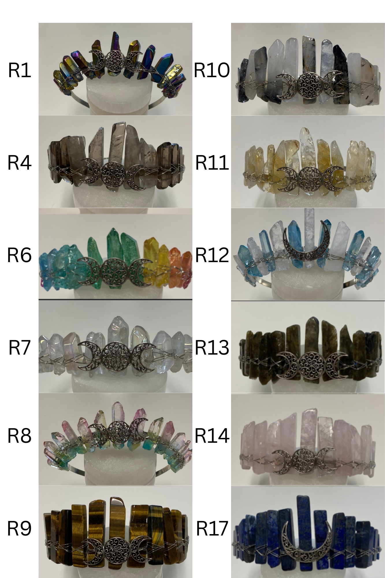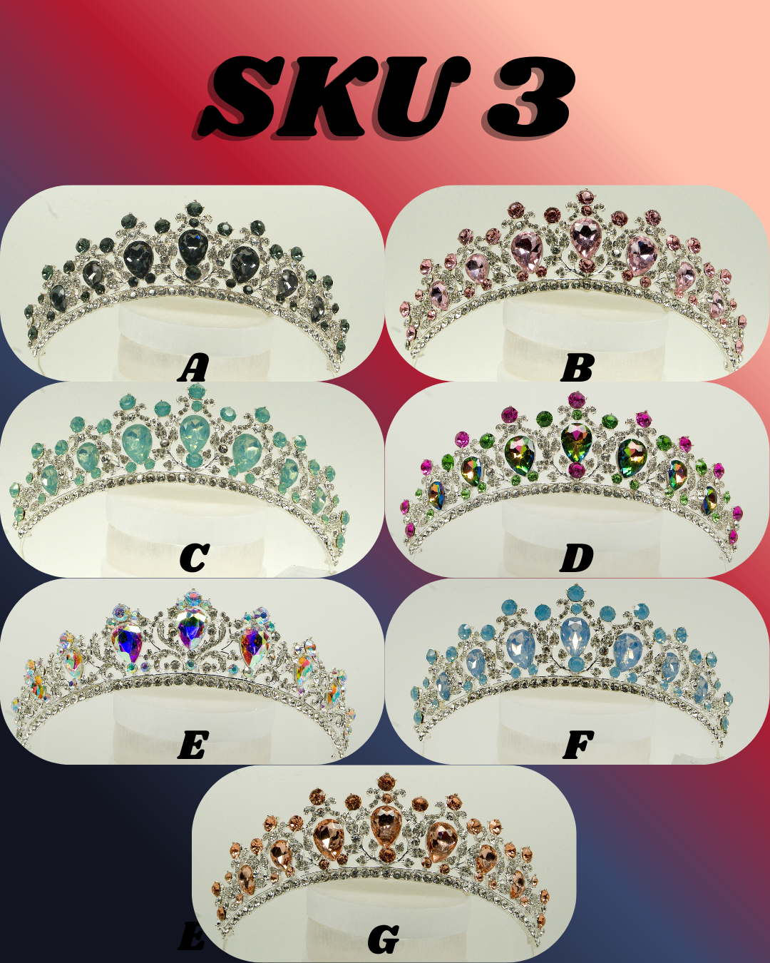 Crown diversity is what sells the most. The best way to order is tell me the quantity you would like and I will make the most diverse lot possible. Another way to order is tell me how many you would like and give me guidance on what colors you want more of and what you want less of. Another way to order is to pick exactly what you want. Order by SKU and then the letter by each Crown. BookViking@gmail.com