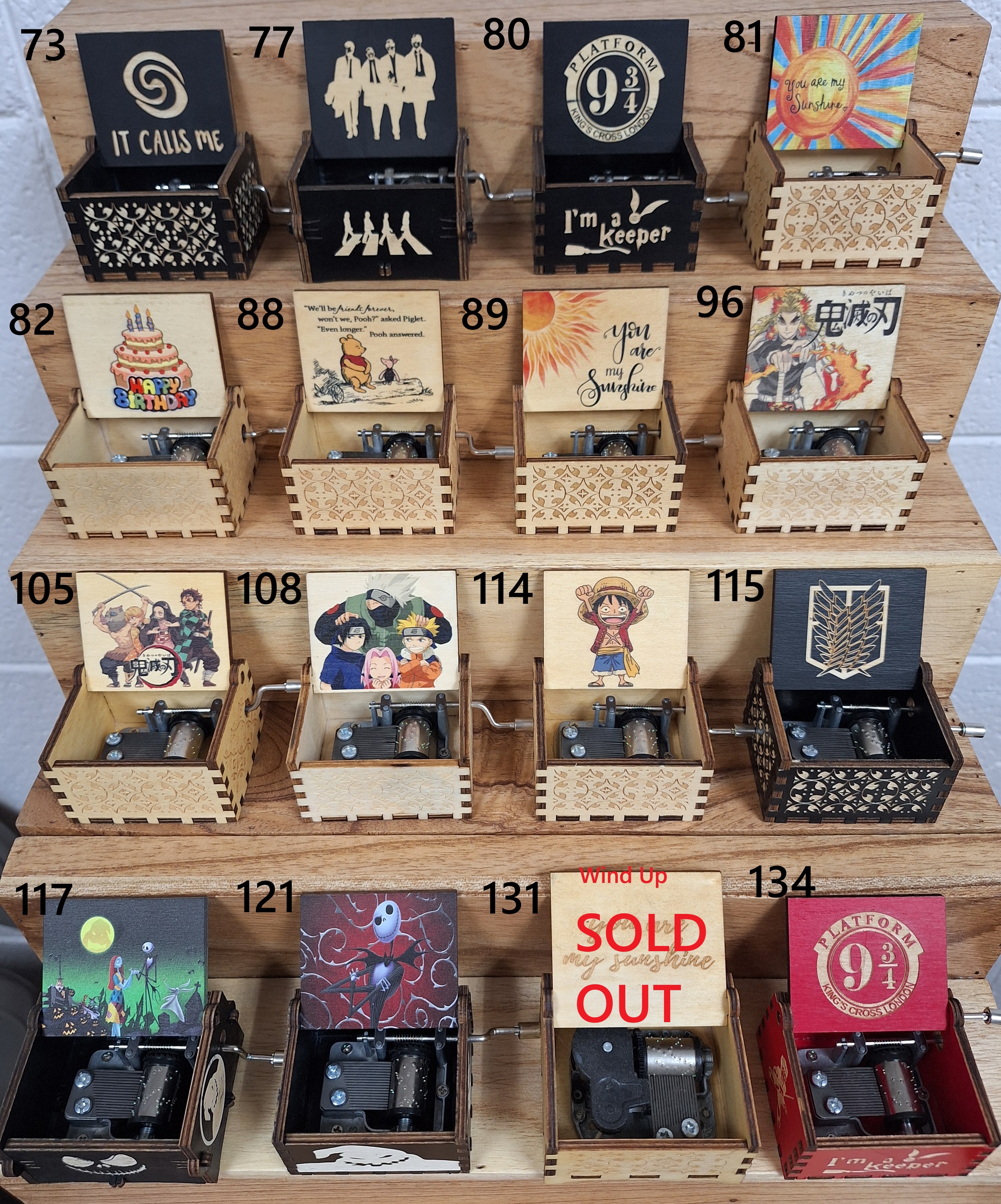A very good way to order music boxes is getting 5 of the top 10 sellers for a total of 50 boxes. 10 of the top 10 for a total of 100 boxes. 5 of the top 20 for a total of 100 boxes. You can order exactly what you want and the quantities as well. This product is super-hot if you stay in the top 30 or 40 boxes. I have each music box taped in sets of 5 and that is the way I prefer to sell them but I do not mind separating them. This is just a preference because we sell a lot of boxes. bookviking@gmail.com
